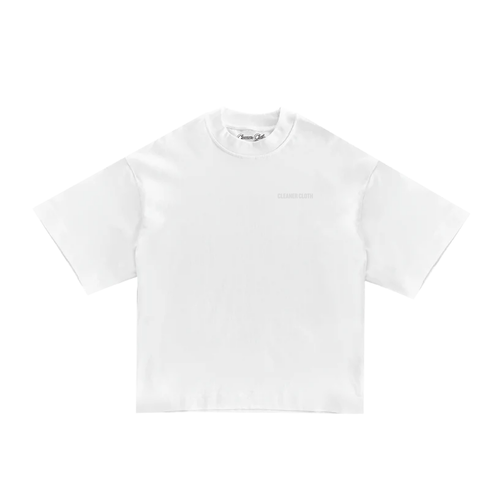 The staple luxury tee by Cleaner Cloth. Slightly cropped for a boxy, streetwear look. Subtle monotone embroidery adorns the left chest with a block letter Cleaner Cloth design.